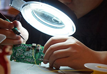 Инженер нашего сервис центра исполняет ремонт: заменяет неисправную комплектующую работоспособной оригинальной деталью